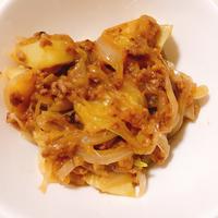 じゃがいもをレンチンで柔らかくして、ごま油で合挽きと玉ねぎと柔らかくなったじゃがいもを入れて混ぜ合わせ、レシピ通りの調味料を入れて最後に水溶き片栗粉でトロミをつけました!