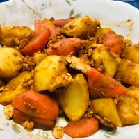 揚げたじゃがいもと牛豚合挽き肉を赤味噌で炒めてみました。ほくほくのじゃがいもにコクのあるひき肉に、赤味噌の風味がよく合います。じゃがいもを揚げる事によって更に美味しく頂けます。お好みの野菜を入れるとアレンジが広がります。是非お試しくださいね。