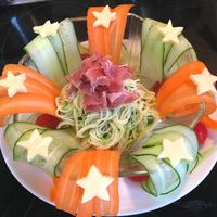 チーズと生ハムもトッピングしました。さっぱりして夏にぴったりです!味がぼやけていたので塩を足したらさらに美味しくなりました。
