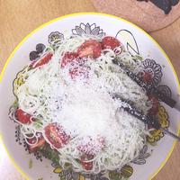 ソーメンでしました☆美味しかったです!!チーズを削って上にかけたらなお美味しい☆ソーメンでイタリアンをすぐ作れる☆