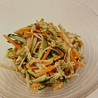 - 1 ごぼう、人参、キュウリを千切りにします。