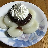 小豆あんで食べたいと言われたので、餡とホイップクリームをトッピングしました。モチモチの滑らかなお団子に仕上がり、とても美味しかったです。