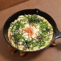 フライパンで作りました。最後の卵なし、海苔と七味をふりかけました。美味!お酒のつまみにも♪フライパンの場合、中火で記載時間より長めがいいです。