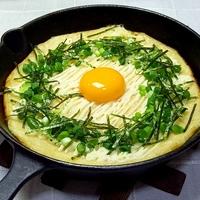 長芋とチーズの組み合わせが生み出すふわとろ食感が絶妙です。スキレットやフライパンで作れ、とろ火でじっくり焼くとうっすら香ばしいおこげも楽しめます。うずらの卵や海苔、明太子などお好みのトッピングで楽しめ、お酒のつまみにぴったり。マヨネーズを添えても美味しく、居酒屋メニューのような仕上がりに。簡単調理なのに、熱々でトロットロな食感が楽しめる一品です。