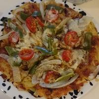 ザクザクしっとりとしたじゃがいものガレットをピザにしてみました。エリンギの食感がアクセントになり、とっても美味しいですよ。タバスコをかけて召し上がっていただくのもおすすめです。材料も簡単に揃えられますので是非、お試しくださいね。