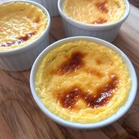 - 6 耐熱性のバットに5を入れ、ココットの底から2cm程のお湯を注ぎます。160℃のオーブンで30分程湯せん焼きにします。竹串を刺して粘り気のある生地がつかなければ焼き上がりです。