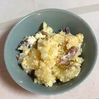 - 4 ボウルに入れてフォークで潰し、2、(A)を入れ混ぜ合わせます。
