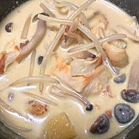 ココナッツミルクと少し水を入れて、しめじやしょうがも足しました。