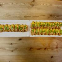 揚げが小さくて、具材が乗り切らなくって、見た目が悪いです。酢飯はニンジンと椎茸を煮て混ぜました。