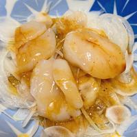 玉ねぎのすりおろしは省きましたが、美味しかったです。タレが結構余ったので、翌日ホタテ抜きで新玉ねぎにかけただけでも美味しかったです。