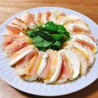 桃の甘みと生ハムの塩味が絶妙にマッチし、白ワインビネガーがさっぱりとした後味を演出します。フレッシュなモッツァレラチーズの優しい味わいが加わり、まるでイタリアンレストランのようなおしゃれな一皿に仕上がります。バルサミコ酢での代用も可能で、オリーブオイルとブラックペッパーのアクセントが全体の味わいを引き立てます。パーティーメニューとしても喜ばれる贅沢なサラダです。