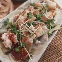 電子レンジで作る、餃子の皮を使った重ね蒸しはいかがですか。ジューシーなナスやひき肉をもちもちとした餃子の皮で包んで食べると、たまらないおいしさです。ピリ辛のタレやかいわれ大根もアクセントとなり、お酒のおつまみとしてもぴったりです。ぜひお試しくださいね。