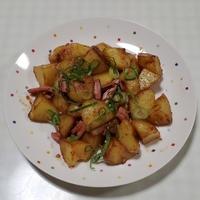 - 4 じゃがいもにほんのり焼き色がついたら、塩辛を加え火が入るまで炒め、しょうゆ、黒こしょうを加え火から下ろします。