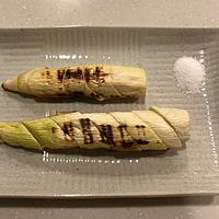 焼きマコモダケのご紹介です。マコモダケはマコモの若茎が肥大した部分で、くせが少なく、柔らかいタケノコのような歯ざわりです。焼くとほのかな甘味があり、かすかにとうもろこしのような香りがして、おいしいですよ。ぜひお試しくださいね。