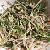 - 5 4に1、2、3を入れ和えたら器に盛り付け、お好みで糸唐辛子を乗せて完成です。