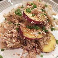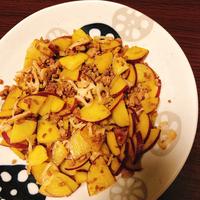 - 5 さつまいもに火が通ったら(A)を加え、中火で炒め、照りがでてきたら火からおろします。