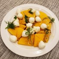 カプレーゼといえば、モッツァレラチーズとトマトの組み合わせですが、モッツァレラチーズと柿の組み合わせもおいしいですよ。モッツァレラチーズはクセがないので、柿の甘みを引き立ててくれます。ぜひお試しくださいね。