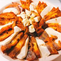 柿とモッツァレラチーズの意外な組み合わせが見事にマッチした一品です。柿のジューシーな甘みとモッツァレラの塩気が絶妙なバランス。バルサミコ酢とレモン汁で爽やかな酸味をプラスすれば、レストランで提供されるような上質な味わいに仕上がります。熟した柿を使うのがポイントで、ハチミツをかけるとデザート感覚でも楽しめます。ワインのおつまみとしても最高な、簡単でおしゃれなカプレーゼです。