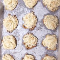 - 3 クッキングシートを敷いた天板に丸くのせます。同様に23個作ります。