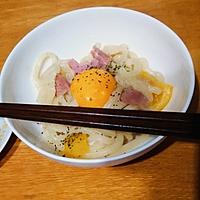 昆布茶が決め手!釜玉風うどんカルボナーラ レシピ・作り方