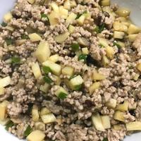 冷蔵庫にミンチが残っていたので初めて作ってみました。タケノコがシャキシャキして歯触りが良かったです。