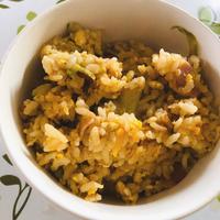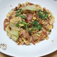 - 5 1、3を入れてレタスがしんなりするまで中火で炒めたら、ごはんを入れて具材と合わさるように炒め合わせます。