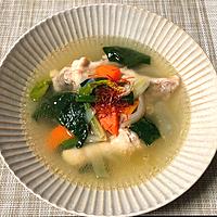 リピートしてます!シンプルな味付けなのにしっかり手羽元から味が出ててめちゃめちゃ美味しいです。今回はほうれん草+小松菜を入れて、手羽元と手羽先両方入れて作りました。