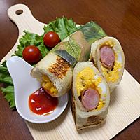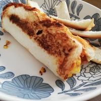 もう何度も作っています。今回は卵半分、スライスチーズ、ウインナーでソースはケチャップにマヨネーズ、チリパウダー、オレガノを入れてワックスペーパーで包んでみました。中の具材が出ないので食べやすいですよ✨