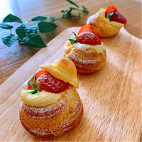さくさくの生地は、オーブンの中でぷくぷく膨らみ、焼き立ての香ばしい香りが漂います。クリームは濃厚なカスタードと生クリームの2層仕立てで、ミルキーな甘みが口いっぱいに広がります。生地作りのポイントは材料を常温に戻すことと、焼き加減は200度10分→180度15分→170度15分の3段階で焼くこと。プチシューサイズにしたり、チョコをトッピングしたり、アレンジも楽しめます。