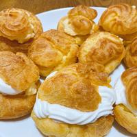 スイーツの定番メニュー、クリームたっぷりシュークリームのご紹介です。ふっくらと膨らんだシュー生地に、バニラの香りのカスタードクリームと生クリームを合わせたクリームを詰め、食べ応えのある一品に仕上げました。ぜひ作ってみてくださいね。