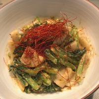 - 5 お皿に盛り付け、糸唐辛子を乗せて完成です。