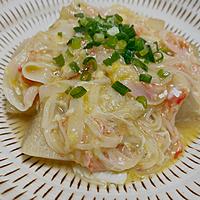 大根がなかなか染み込まず、たくさん煮込んだため汁がなくなり分量を追加して作りました。塩は少なめにしました。優しいお味です!大根以外にも合いそうですね。そして、カニカマが出汁として味付けしてくれるのでカニカマは外せないですね!