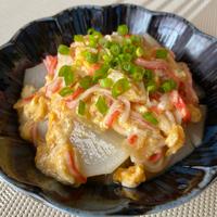 大根とカニカマの節約レシピのご紹介です。大根にカニカマと卵のあんかけをかけると旨味が増してさっぱりと食べられます。お好みで酢をかけても美味しくお召し上がりいただけます。材料費も手間もかからないので是非一度、お試しください。