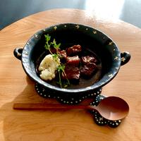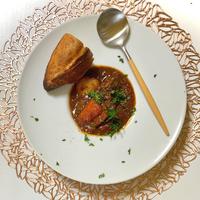 いつもとはひと味違う、特別な牛肉の赤ワイン煮込みのご紹介です。隠し味の「たまり醤油」で上質ながらもどこか懐かしい味に仕上げました。最後に散らした「粉山椒」がコク深いソースと相性抜群で、今までにない味の変化を楽しめます。味の染みたホロホロの牛肉と野菜も絶品です。ぜひ特別なひと時にお試しくださいね。