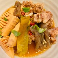 ゴボウなど野菜が多すぎたためか、軟骨はコリコリ食べられるがトロリとしない固さでした。
