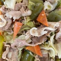 - 準備 キャベツはざく切り、ピーマンはヘタと種を取り除き乱切りに、長ねぎは斜め薄切りにしておきます。