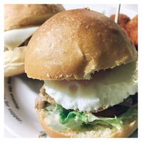 - 5 バンズにサニーレタス、マヨネーズ、トマト、4の順にのせ、挟みます。