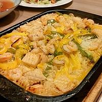 NORITZさんのマルチグリルは無いのでホットプレートで強火15分→中火10分→蒸らし10分で調理しました。カレーとコンソメがもう少し濃くても良さそう、美味しかったです。