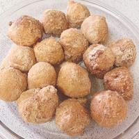 - 4 鍋の底から5cm程の高さまで揚げ油を入れ、170℃まで熱したら、2をスプーンで丸く成形して入れて、中に火が通るまで7分程揚げます。