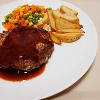 買ってきた肉量の都合で1人前150gで作ったが、それでも凄く大きなハンバーグに仕上がった。ソースも直ぐに揃う物だけで簡単に作れるのが嬉しい。反面、レンチンで作れると思っていた冷凍ポテトの調理が面倒だった。ついでだからミックスベジタブルもレンジでなく茹でてみたが食べる段に成ると冷えていて不味かった。