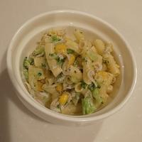 1歳〜1歳半ごろ(完了期)から始められる、しらすとマカロニのゴママヨサラダはいかがでしょうか。ブロッコリーの緑で彩りもよく、しらす、すりごまの旨味がたっぷりのサラダです。お好みでにんじん等の野菜を加えてもおいしいですよ。ぜひ、お試し下さい。