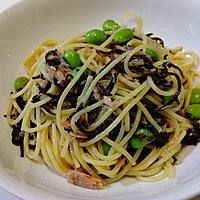 パスタに味付けが不安だったが、塩昆布とごま油が効いてて、とても美味しかった。