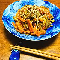 「にんじんとしいたけのごま味噌炒め」の作り方を簡単で分かりやすいレシピ動画で紹介しています。