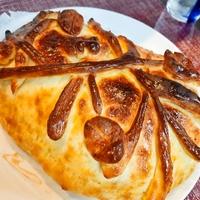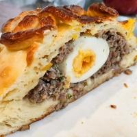 ピロークはロシア語で宴会を意味する言葉で、お祭りやお祝い事の際に欠かせない伝統的なお料理です。ピロシキと同様に様々な具材で作られるのですが、今回はゆで卵入りのミートローフにしてみました。切り分けてみんなで楽しく食べたいですね。パン生地で模様をつけるのがロシア流のおもてなしです。