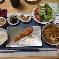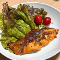 鮭グリル サラダ トマトレタスごま油和え 白米1.5合 玄米0.5合