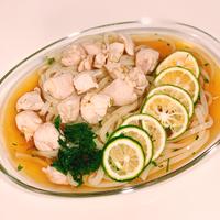 暑い日に食べたくなる、冷たくてさっぱりとしたアレンジうどんです。 柑橘系の爽やかな香りが、食欲をそそります。 カボスを絞りながら食べると、味も少しずつ変化するので飽きることなく食べられます。 ぜひお試しくださいね。