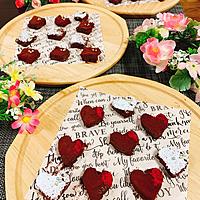 - 4 固まったらバットから取り出します。ハート型で抜き、粉糖、ココアパウダー、フリーズドライストロベリー、ダイスピスタチオでそれぞれデコレーションをして完成です。