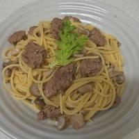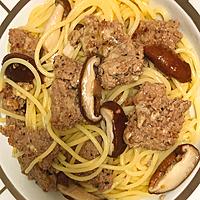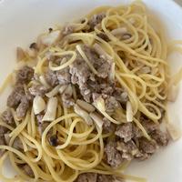 一人分で作ったのでひき肉小パック使い切るためにお肉多めになりましたが、多い方が満足感あっていいです!パスタ本体はオイルベースであっさりしていますが、お肉と一緒に食べるとバランスが良くて美味しいです。お肉の下味付けが大事だと思います。個人的には多いかな?くらいかけるとちょうど良かったです。