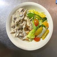 舞茸なし。牛乳を豆乳にしました。このソース大好きです。クリームチーズの消費にもなって助かります。