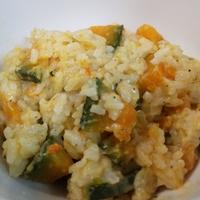 たっぷりチーズとごろごろかぼちゃのミルクリゾット風はいかがでしょうか。冷やごはんで作るので、お手軽に、ささっと作ることができます。粉チーズの風味とかぼちゃの優しい甘味が引き立つ一品です。ぜひ、お試し下さい。